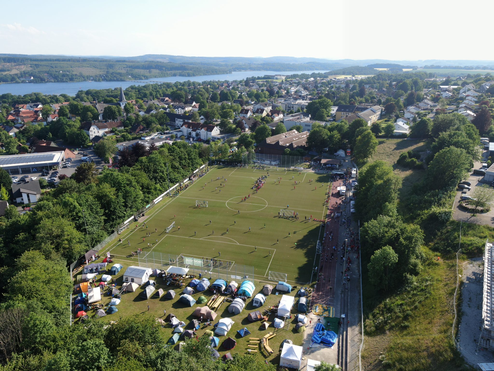 Am Berlingser Weg, unweit von Schulen, Schwimmbad und im Winter für die JSG zur Verfügung stehender Ballsporthalle, befindet sich der Sportplatz der SpVg. Möhnesee. Die im Jahr 2020 renovierte Sportanlage bietet allen Kickern optimale Trainingsbedingungen inkl. einer überdachten Tribüne.
